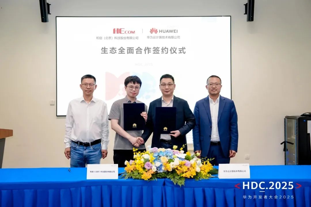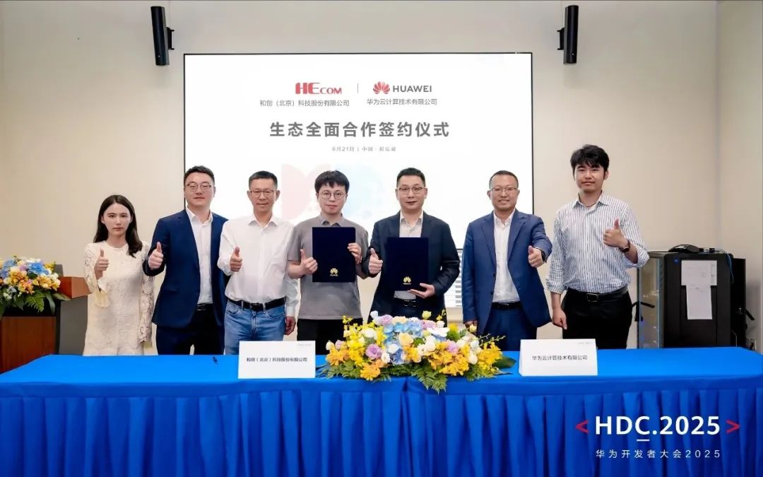 在2025華為開發(fā)者大會期間,和創(chuàng)(北京)科技股份有限公司(以下簡稱“和創(chuàng)科技”)與華為云計算技術(shù)有限公司(以下簡稱“華為云”)簽署生態(tài)全面合作協(xié)議,雙方將在聯(lián)合解決方案構(gòu)建、AI應用開發(fā)及行業(yè)大模型共創(chuàng)等領(lǐng)域展開全方位合作,共同推動新一代人工智能產(chǎn)品在工程行業(yè)的應用落地。在和創(chuàng)科技CEO劉學臣、華為云生態(tài)發(fā)展與運營部部長陶志強的共同見證下,和創(chuàng)科技副總裁王禹、華為云北京云生態(tài)發(fā)展與運營部部長代表雙方完成簽約。