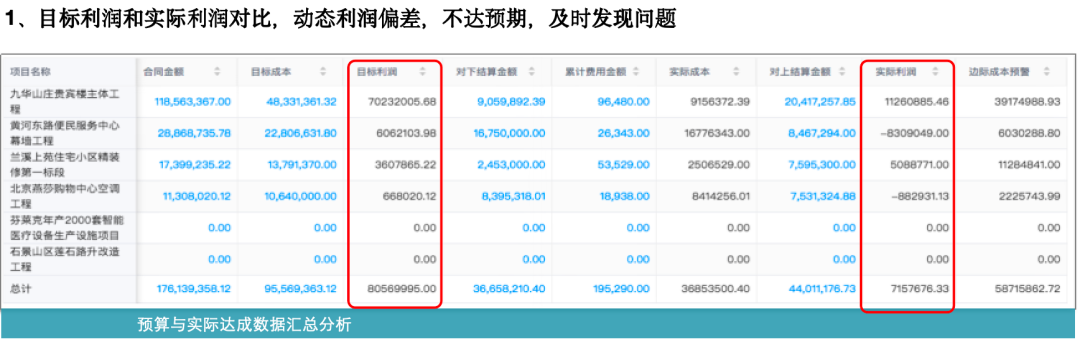 目前項(xiàng)目利潤(rùn)較穩(wěn)定,但是有些項(xiàng)目管不好還是會(huì)有一些虧損。公司在投標(biāo)之前就會(huì)做預(yù)算,但是在施工過程中如果管控不到位,就不知道虧錢到底虧在哪里,賺錢賺在哪里,只能項(xiàng)目結(jié)束了才知道賺還是虧。