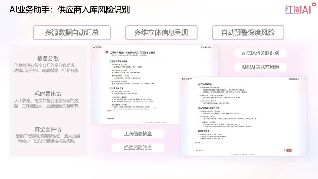 紅圈AI業(yè)務助手:秒級識別合約/供應商風險,智能處理文件,釋放員工潛能!