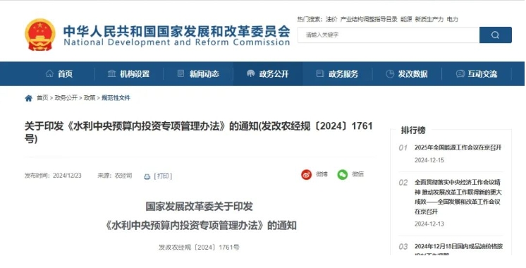 行業(yè)政策?|?國家發(fā)改委發(fā)文!加強(qiáng)水利中央預(yù)算內(nèi)投資專項管理!
