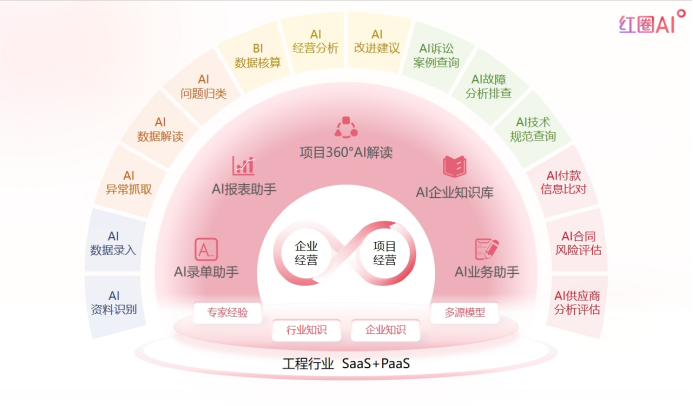紅圈系統及紅圈AI系列智能產品,共同構成了一個“更懂工程企業經營的”智能化基座。它專門服務于工程企業,功能聚焦于圍繞項目的經營管理。基于強大的PaaS平臺,它能靈活配置,滿足你的個性化需求,伴隨你的企業一同成長。而SaaS模式,又讓你無需在硬件上投入重金以及另外招聘運維技術人員的費用,以極低的門檻擁抱數字化。